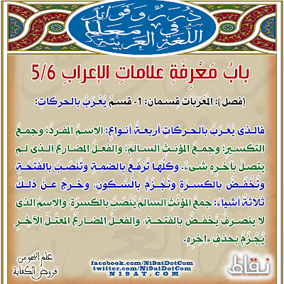 (وكلها ترفع بالضمة وتنصب بالفتحة وتخفض بالكسرة وتجزم بالسكون) وسيأتي.