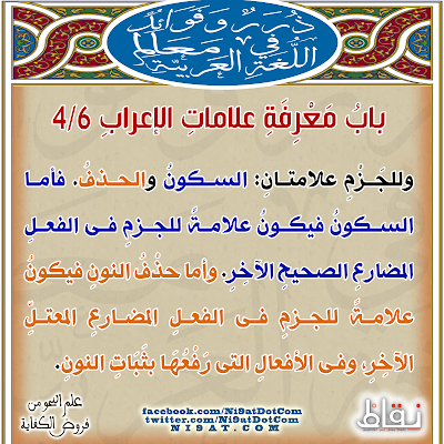 (فأما السكون فيكون علامة للجزم في الفعل المضارع الصحيح الآخر)